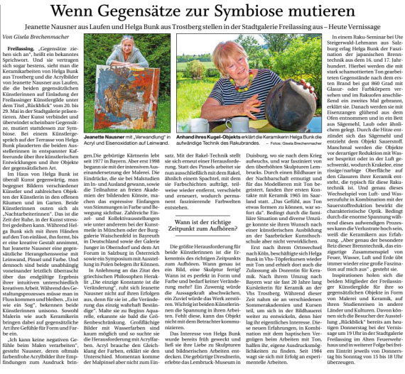 Wenn Gegensätze zur Symbiose mutieren - Jeanette Nausner aus Laufen und Helga Bunk aus Trostberg stellen in der Stadtgalerie Freilassing aus