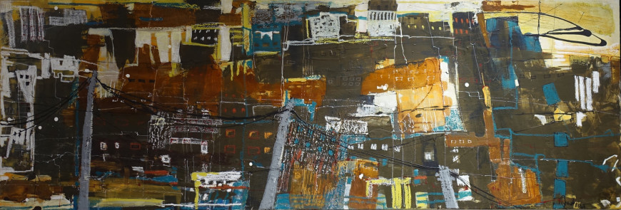 Favela, 50 x 140 cm, Acryl u. Eisenoxyd auf Leinwand