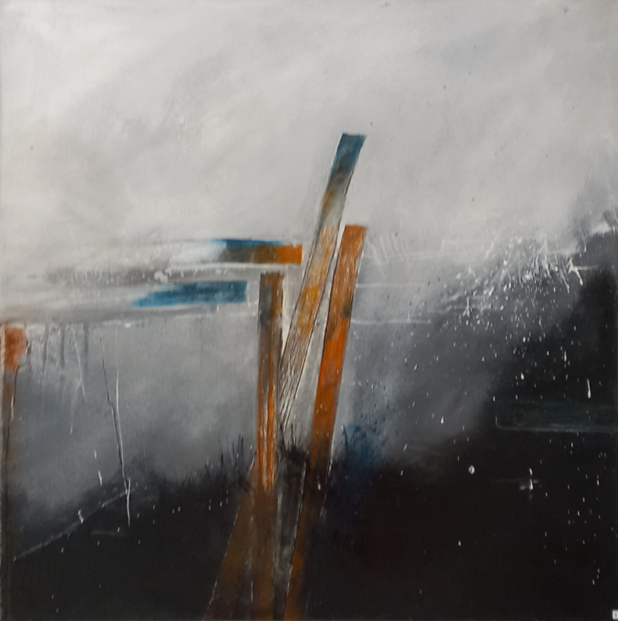 "Nirgendwo gleiten die Ströme als Eins" - 100 x100 cm , Acryl auf Leinwand